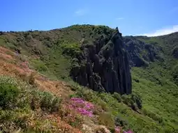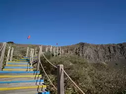 灵实岩位于汉拿山西南侧,以其耸立于悬崖之上的壮观岩石地貌而闻名。海拔1600米,景色壮丽,尤其是在日出与薄雾交织之时,更添神秘之美。维护良好的徒步路线使其成为热门的徒步旅行目的地。沿着小径攀登,可以饱览奇特的岩石地貌、汉拿山的森林以及远处西归浦海的壮丽景色。灵实岩四季景色各异,为徒步旅行者带来难忘的体验。