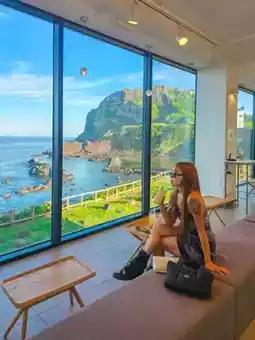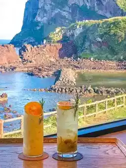 这家位于城山日出峰附近的海景咖啡馆是放松身心的理想场所。他们提供各种烘焙食品,透过宽大的窗户还能欣赏到令人心旷神怡的海景。🫶