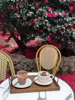 务必在上午10点前到达!人少,不用抢靠窗的座位,在山茶花丛中喝咖啡超级惬意,阳光透过枝叶洒在花瓣上,每一张照片都像杂志封面!