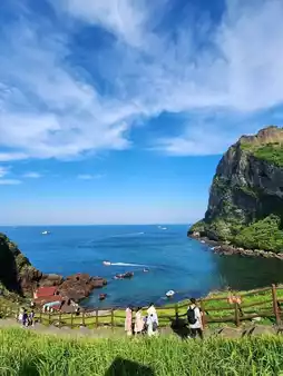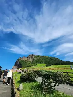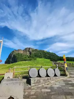 这座山是汉拿山360座寄生锥之一,也是世界上最大的沿海火山口。登顶大约需要25-40分钟。从那里,您还可以欣赏日落美景,饱览广袤的牧场,远眺令人叹为观止的壮丽山峰风光。🏞