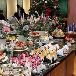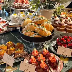 的甜点也摆满了💖💖💖 牛角包上的奶油很硬,所以酥脆的饼底完全不会溢出来,上面还铺满了红豆、奶油和炼乳,味道简直罪恶感爆棚……😌🤍
