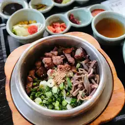 您来到圣水区,想找点热乎乎的食物暖暖胃,我们推荐您去“Solsot”——一家韩式砂锅饭餐厅。餐厅选用优质大米,用石锅盛装,热气腾腾。此外,还提供全套正宗的韩式小菜。在Solsot享用完砂锅饭后,锅底会残留一层焦香的米饭(누룽지,Nurungji),您可以将餐厅提供的清汤倒入其中。等米饭变得酥软后再吃。这种做法叫做“숭늉 (Sungnyung)”,是韩国传统的烹饪方法,能为这道菜增添风味和温暖。