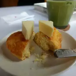 司康饼比较干,稍微烤过之后,搭配奶油口感刚刚好。