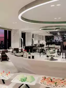 - 设施及服务:设有24小时餐厅、屋顶酒吧、无边泳池、健身中心以及配备独立干湿浴室的宽敞客房。