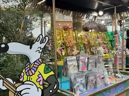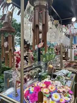 市集里摆满了各种充满夏日度假风情的道具和时尚单品。夏威夷图案的服装、热带风情的小玩意、香薰蜡烛和美妆产品都让我眼前一亮。光是逛逛就让我兴奋不已。