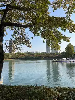 我沿着湖边缓缓走着,湖面上倒映的树木色彩更加鲜艳夺目,独特的秋日美景尽收眼底,令人心旷神怡。沿途的长椅是驻足欣赏美景的绝佳地点。🔮 即使身处城市中心,
