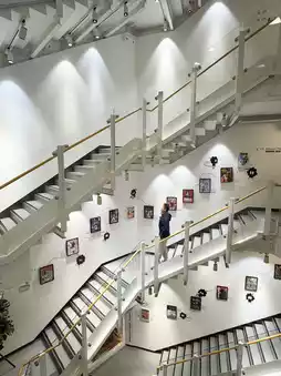 酒店大堂的设计灵感源自大学图书馆、音乐教室和艺术教室,别具一格,柱子上刻有象形文字风格的“谜语”和随机排列的字母。酒店