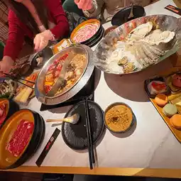 首先推荐的是New Sukiyaki。自助餐价格从189元左右起。肉类和新鲜食材可以向店员点餐🥩。至于蔬菜🥬、饮料🫖和甜点🍰,可以在店前的吧台和冰箱里自取。麻辣涮涮锅汤底比较油腻。所有肉类、海鲜和小吃的品质都很好👍🏻——