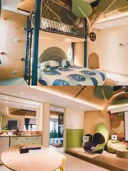 我们选择了宽敞且设施齐全的家庭套房。房间内特别配备了帐篷、积木、海洋球等亲子设施,让孩子们在房间里也能尽情玩耍。每间客房还贴心地准备了一瓶红酒和薰衣草眼罩。🍷💆♀️