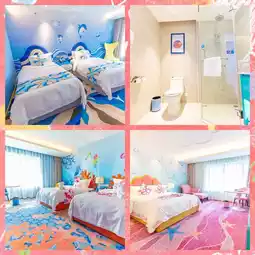提供多种房型选择,包括海豚房、企鹅房和美人鱼主题房,每间都为您带来沉浸式的海洋体验。躺在床上,被海洋生物环绕,简直太治愈了!