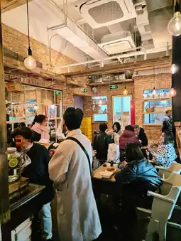 店面不大,但总是人满为患。店内有室内和室外座位,结账队伍也比较长。