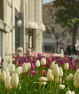 最近,新乐路上的郁金香盛开,紫、红、白三色交相辉映,