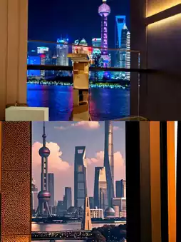 。2️⃣ 和平饭店靠近外滩,可以欣赏到东方明珠塔的景色