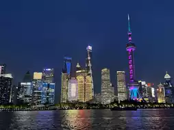 东方明珠塔灯火辉煌,黄浦江两岸的建筑