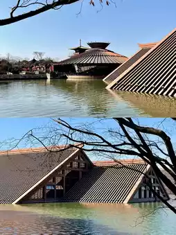 3. 复临塔:三月梅花盛开,宛如“小京都”,正面拍摄水面倒影