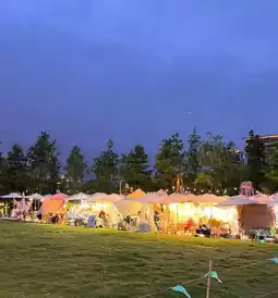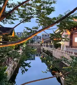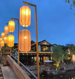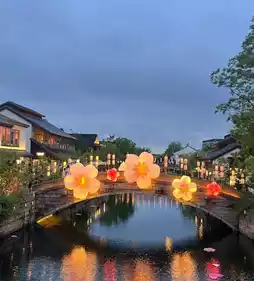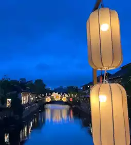 尤其是在夜幕降临之后,灯光昏暗,水波荡漾,就连蓝砖白墙也笼罩在柔和的光晕之中。与现代的玻璃幕墙店铺交相辉映,古典与时尚完美融合,如同清爽的莫吉托鸡尾酒——清爽而独特!记得带上会拍照的朋友;只需随意倚靠在马卡龙色的灯笼旁,打开手机补光灯,就能瞬间捕捉到“穿越千年的清凉美景”!