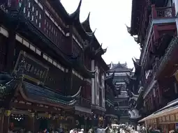 当然,这是一座现代重建的建筑,但其细节还原得十分到位。至于哪座建筑更赏心悦目,目前还不得而知。 前往这里非常方便:许多公交车都会停靠在豫园北门。沿着公交线路往回走一小段路,就能看到公园大门。 这里游客众多,到处都是常见的旅游设施:纪念品商店、咖啡馆和各种商品琳琅满目的店铺。穿过横跨池塘的蜿蜒小桥,就到了售票处和豫园的入口。
