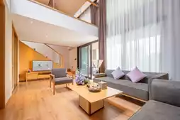 [至尊庭院房] 96㎡,拥有私人庭院🌿、绿茵草坪和户外浴缸,在星空下泡温泉,浪漫至极;