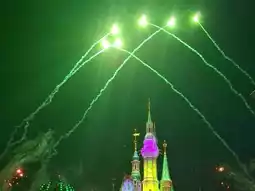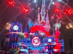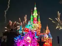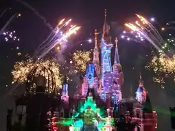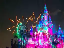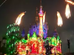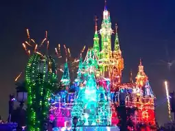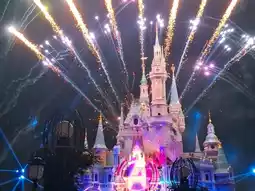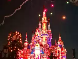 上海迪士尼的烟火秀非常漂亮,令人兴奋,烟花燃放得很高,非常明亮。这真是一场超级精彩的表演,值得一看。