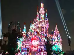 ✨来上海迪士尼必看的表演是“奇幻光影秀”,这是一场精彩绝伦的烟火、激光、火焰、水幕秀,在主城堡举行,全场共七个部分,总时长约16分钟。我们提前一个小时找到了视野开阔的观景点,坐下来等待。✨️演出