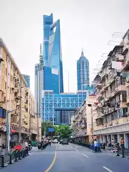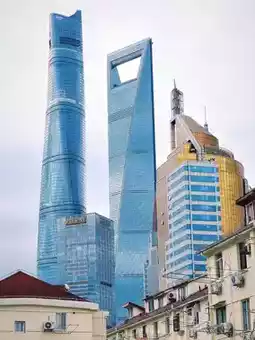 从小区高层住宅的窗台或屋顶,可以毫无遮挡地直视上海中心大厦、上海环球金融中心和金茂大厦。清晨或黄昏时分,阳光穿透玻璃幕墙,与古老的砖石建筑形成鲜明对比。每一张照片都像是《赛博朋克2077》的现实版。2️⃣