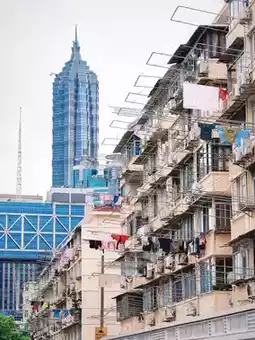 建于20世纪70年代的老式公屋,红砖外墙上爬满了藤蔓,晾衣绳上飘动着印花床单,楼下一位老妇人正用搪瓷盆浇花。打开窗户,映入眼帘的是前方陆家嘴的钢铁森林,以及身后充满活力的都市生活。这种对比赋予了照片一种叙事感。3️⃣