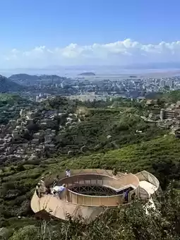 如果你不想爬山,只想拍拍这条栈道的景色,那就导航到“哇奥停车场”。停车场里有一家“第五季图图咖啡馆”,门票每人68元人民币,包含一杯咖啡。里面有很多适合拍照的场景。拍完照后,沿着旁边的栈道走走,几分钟就能看到这个木质楼梯。你不必非得去山顶⛰️,只要在人少的地方拍摄,就能拍出很棒的照片。
