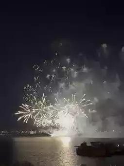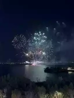 当烟花表演开始时,开阔无遮挡的地平线成为了视觉焦点。五彩缤纷的烟花在水面上绽放,璀璨的倒影更增添了视觉盛宴的震撼。整场烟花表演的编排令人叹为观止,烟花仿佛随着回荡在湖面上的音乐翩翩起舞。这是一场沉浸式的感官体验,既宏伟壮观又温馨动人。