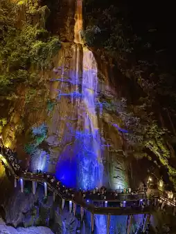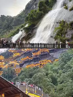 ✅ 日夜双倍体验:白天徒步峡谷欣赏飞流直下的瀑布,夜晚观赏崖壁灯光秀,灯笼走廊+古楼倒影,美得令人窒息!