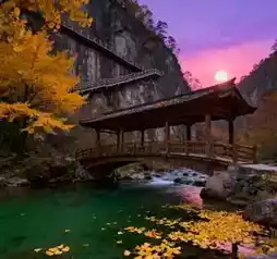 - 午后阳光斜照时,一定要登上抱月桥,俯瞰整个山谷的秋色
