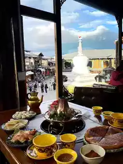 独克宗古镇。这座迷人的小镇有很多咖啡馆、纪念品商店、餐馆,还有很多拍照的游客。晚上,大广场上会有舞蹈表演。我们还在白塔旁吃过一顿很棒的火锅。