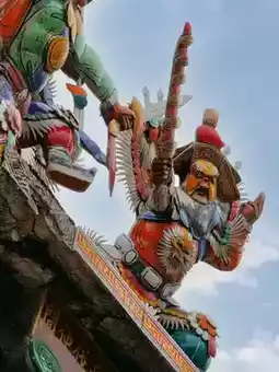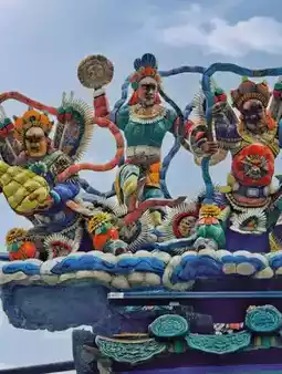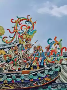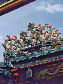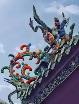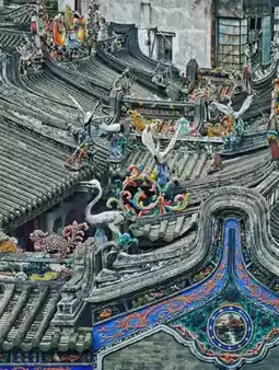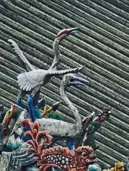 屋顶上五彩缤纷的瓷片,构成了一幅幅生动的画面: