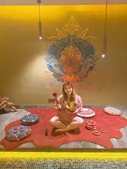 ,每个房间都装饰着艺术家手绘壁画,营造出浓厚的艺术氛围。房间底部铺设火山石,具有净化心灵、舒缓情绪的功效!每个房间都贴心地配备了颂钵和热茶,让您随时随地都能聆听沉浸式疗愈音乐,吟唱颂钵,洗去尘埃,仿佛置身泰国享受水疗!