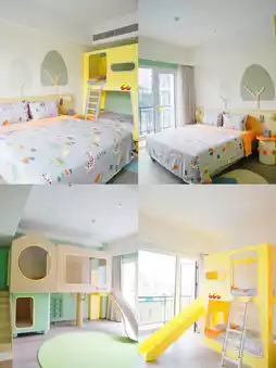 第一天:入住。这次我们选择了新开业的黑森林嘉图酒店。亲子房里有滑梯和双层床,孩子们一进房间就惊喜不已!酒店还贴心地准备了儿童专用洗漱用品和浴袍。放好行李后,我在大堂和泳池边逛了逛。节日气氛浓厚,拍照效果很棒。