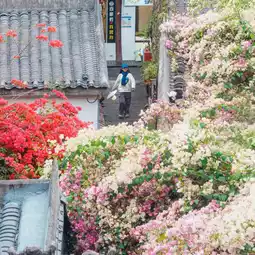 屋顶上肆意蔓延的三角梅,每一簇都热情奔放,浪漫至极💐 一踏进古镇南门右侧的小巷,仿佛误入了花之仙境,简直是拍照天堂📸 不管站着还是坐着,每一张照片都美得让人惊艳,轻松拿下朋友圈的C位。📍 地点