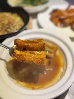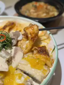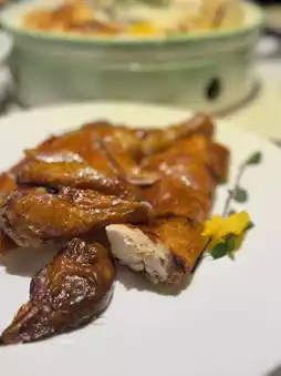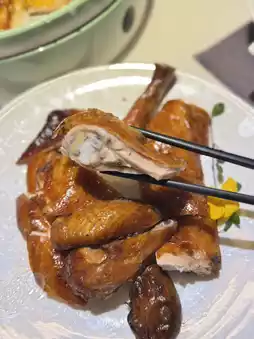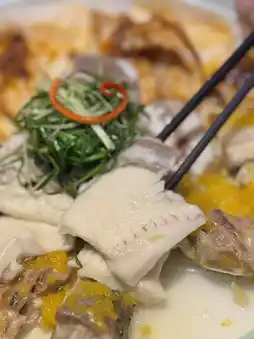 鸡皮在滚烫的油中炸至金黄透明,“咔嚓”一声比薯条还要脆。鸡肉鲜嫩多汁。秘制炖煮12小时,就连鸡骨都用柠檬盐或特制辣酱调味。🔹
