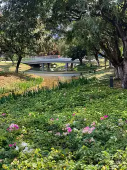 步入园中,绿树成荫,繁花似锦,清新的空气扑面而来。蜿蜒的小径穿梭其间,漫步其间,仿佛置身世外桃源,远离尘嚣。园内有一座波光粼粼的湖泊,湖水清澈见底,偶尔还能看到鱼儿在水中游弋。公园里