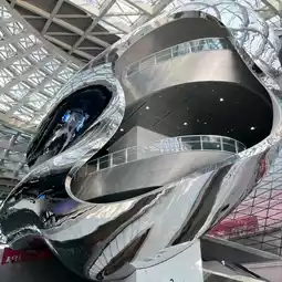 建筑本身——拥有醒目的银色外墙、螺旋形步道和自然光线充足的空间——就值得一游。屋顶可以俯瞰城市全景,是拍照的绝佳地点。