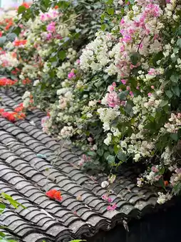 直走到南洋客栈,右转进入一条上坡小路。沿着这条路一直走到观景台,就能看到屋顶上的三角梅。沿途风景优美(图1、2、7、9、11、12、13)。📷