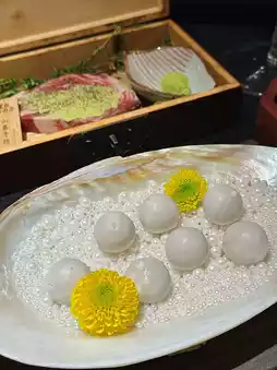 看起来像珍珠,外层是奶黄,里面是鲜嫩的鹅肝,连壳一起盛放,价值极高。