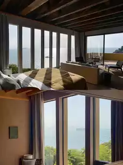 教堂的米色穹顶下,光线如河流般流淌。图书馆的书架间,海风悄悄地阅读着用干花压成的章节。然而,最令人动容的却是那些不经意的瞬间:一只蝴蝶突然停在健身房的落地窗上;透过茶室的木墙,隐约可见渔船闪烁的灯光;从水疗中醒来,映入眼帘的是大海,暮色在地平线上缓缓流淌;酒吧里那杯未饮尽的威士忌,仿佛闪烁着繁星点点。库耶的美从来不在相机的取景框里,而是在你放下相机的那一刻,映入眼帘的波光粼粼的海面。