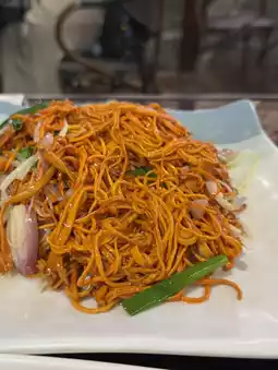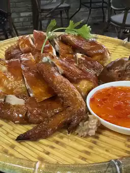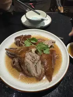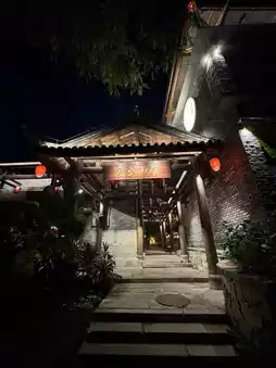 因为酒店离二十四史书院很近,所以那天晚上我们又在古镇里逛了逛。那里也有很多人拍照签名,其中不少人也穿着汉服。展览场地不大,而且早晚的门票价格不一样。我个人觉得,夜晚的景色,配上灯光,比早晨的景色还要美。古镇里有很多很棒的餐厅,你可以随意选择自己喜欢的。我们选了Ezidao,品尝了几道美味佳肴,包括冬虫夏草炒花、招牌烤鹅和荔枝烤鸡。每一道都好吃到令人难以置信!