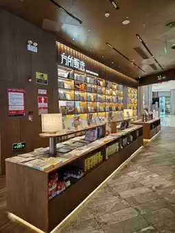 这是商场里一个非常独特的地方。我第一次来“奈雪生活”就感到非常惊喜。虽然整体面积不大,但却融合了多种元素,包括书店、各种餐厅和茶馆。这里还设有供客人用餐的座椅,更像是一个大型美食广场,这在其他商场里并不常见。感觉选择非常丰富。你可以一边阅读一边享用茶、甜点,甚至正餐。这里也出售一些商品。