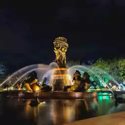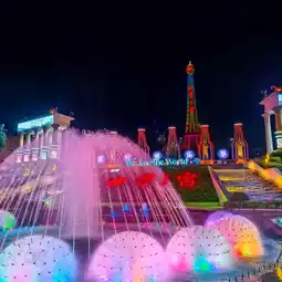 精致的景观、动听的音乐和绚丽的灯光效果,让这里夜晚格外迷人。入口处的玻璃金字塔在五彩缤纷的霓虹灯映衬下,倒映在地面上,营造出梦幻般的景象。这令人着迷的瞬间,让每个人都驻足拍照。