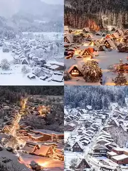 ✅ 白川乡合掌造房屋冬日灯火璀璨,独享雪景