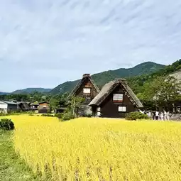 白川乡合掌造村位于日本岐阜县小野郡白川村,是世界文化遗产之一,以其独特的合掌造茅屋而闻名。建议自驾或乘坐巴士前往。