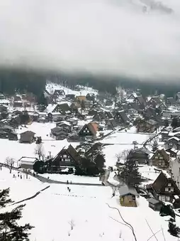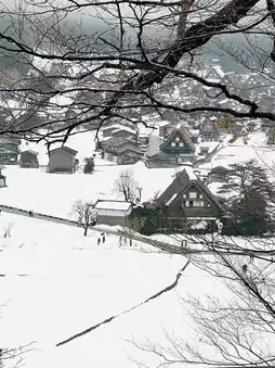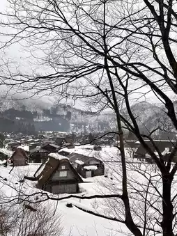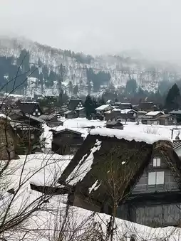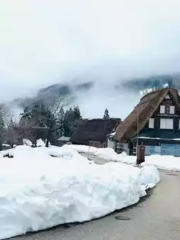 合掌造建筑:这种建筑风格以许多历史悠久的茅草屋顶为特色,屋顶陡峭,呈双手合十的形状,能够有效地排雪,适应多雪的气候。