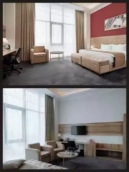 从踏入温德姆华美达酒店(Ramada by Wyndham Shymkent)的那一刻起,我就被它奢华而温馨的氛围深深吸引!💖 从大堂璀璨夺目的水晶吊灯到客房精致的装饰,每一个细节都体现了酒店的用心和品味。在这里,我仿佛找到了远离城市喧嚣的世外桃源。🏠 📍温