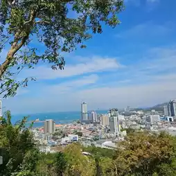 游客可以驾车前往山顶,俯瞰城市全景。不过,道路较为陡峭,请务必小心驾驶。山顶的氛围十分宜人。更重要的是,这里还有一个亮点:供奉着那伽神像和水晶球,用于祈求好运。您可以360度全方位欣赏是拉差县的景色,甚至能清晰地看到洛伊岛。如果天气晴朗,您甚至可以远眺西昌岛。如果您有机会,不妨前来参拜,祈求好运。