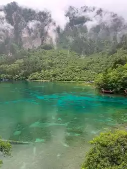 四川九寨沟的孔雀湖景色令人叹为观止。湖水色彩斑斓,从深邃的蓝色到鲜亮的绿色,在阳光的照射下,宛如孔雀羽毛般绚丽多彩,美不胜收。孔雀湖